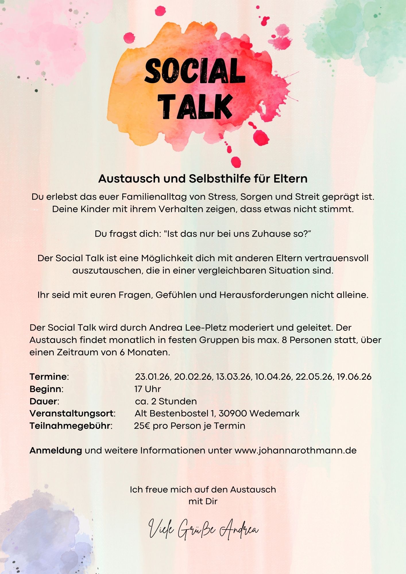 Der Social Talk ist eine Möglichkeit dich mit anderen Eltern vertrauensvoll